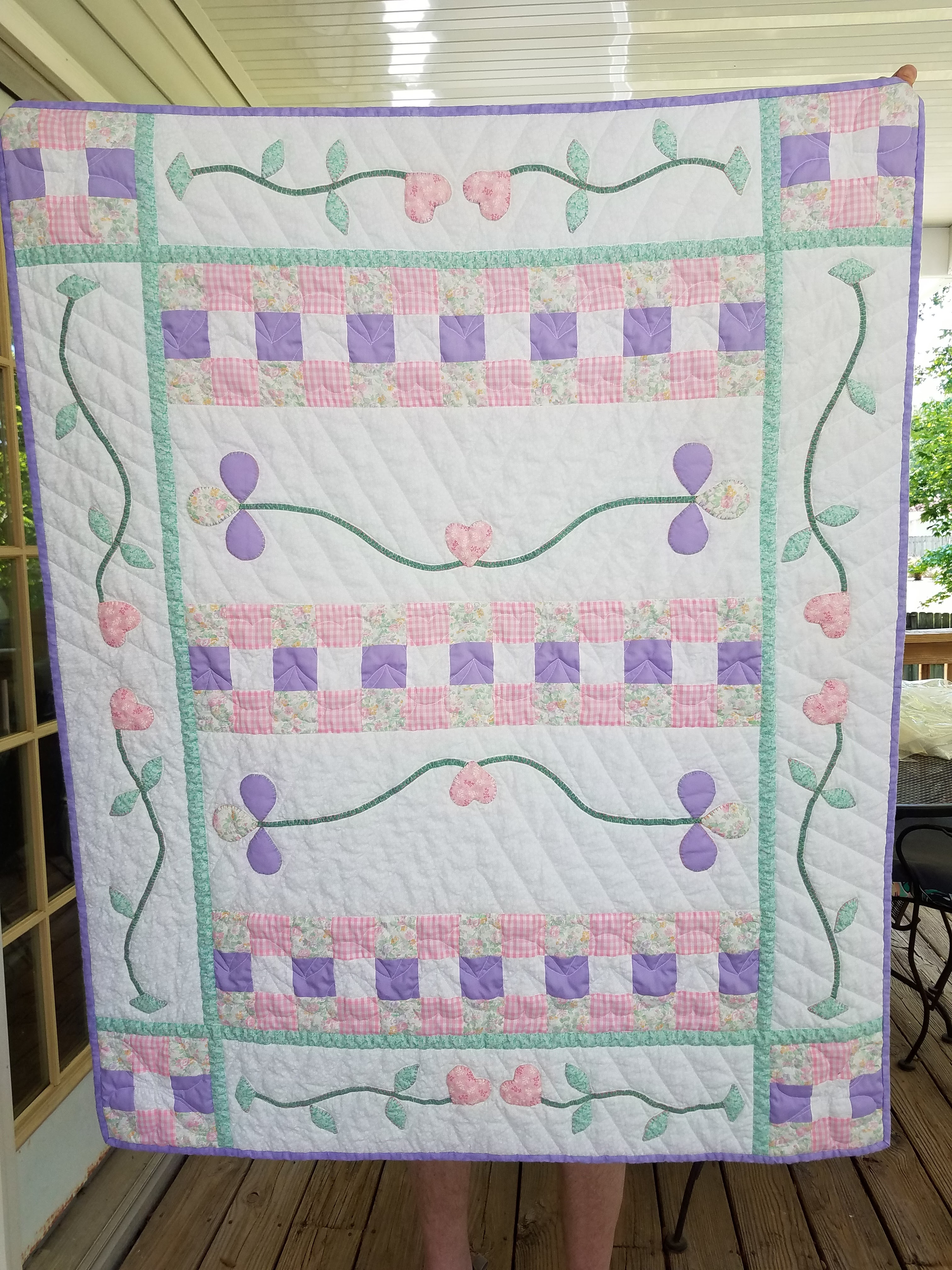 This is the Scrap Dance Mystery quilt From My Carolina Home. from several years ago. I'm thinking it was 2015. I completed this as a leader/ender and it is completely made of scraps. I quilted it using a pantograph for the first time. I originally cut all of the pieces (hundreds) for a twin size quilt and decided I didn't need one that big. I am now using the leftover pieces for another leader/ender. This will be donated to Project Linus.